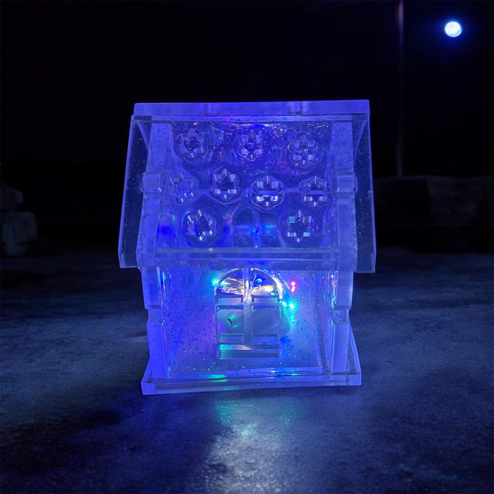 Maison de Noël pouvant contenir une lampe artificielle ou une bougie pour illuminer votre intérieur